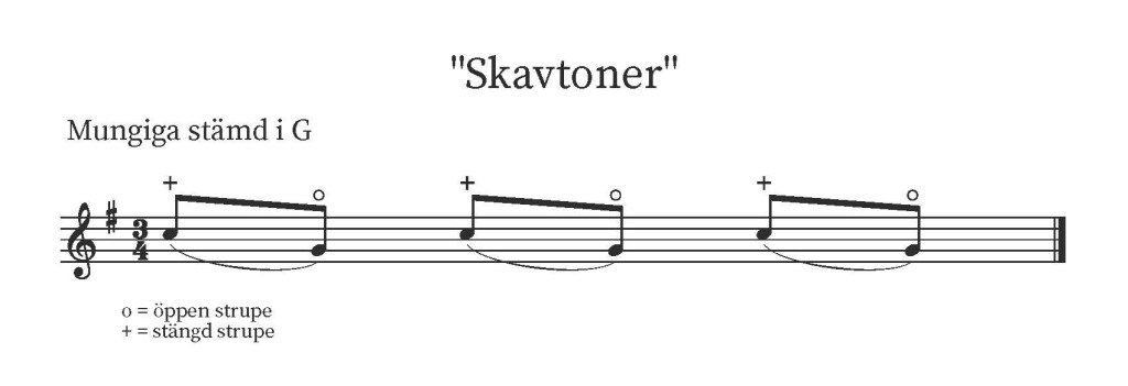 En annan ornamentering som är väldigt typisk och frekvent i spelstilen är att binda samman en ton med stängd strupe (se nedan) och landa på en ton med öppen strupe. Den avskalade melodin utgår alltså ifrån tonen med öppen strupe, men man gör ett anslag på en ton med stängd strupe. På fiol kan det kallas för ”skavtoner”. Det skapar ett ”diou”-aktigt anslag på tonen.