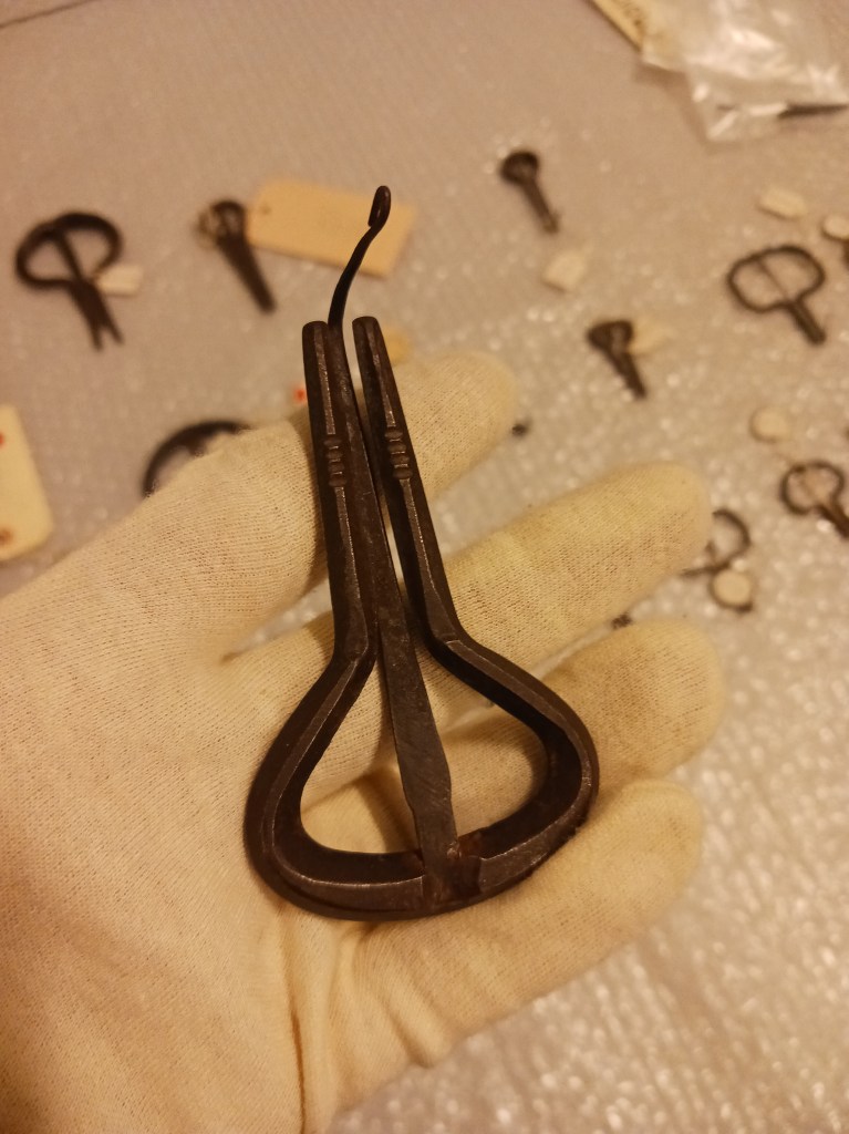Från Västra Götaland kommer även en mycket stor och kraftig mungiga, M2177. Som visar på smides- och speltraditionens variation.